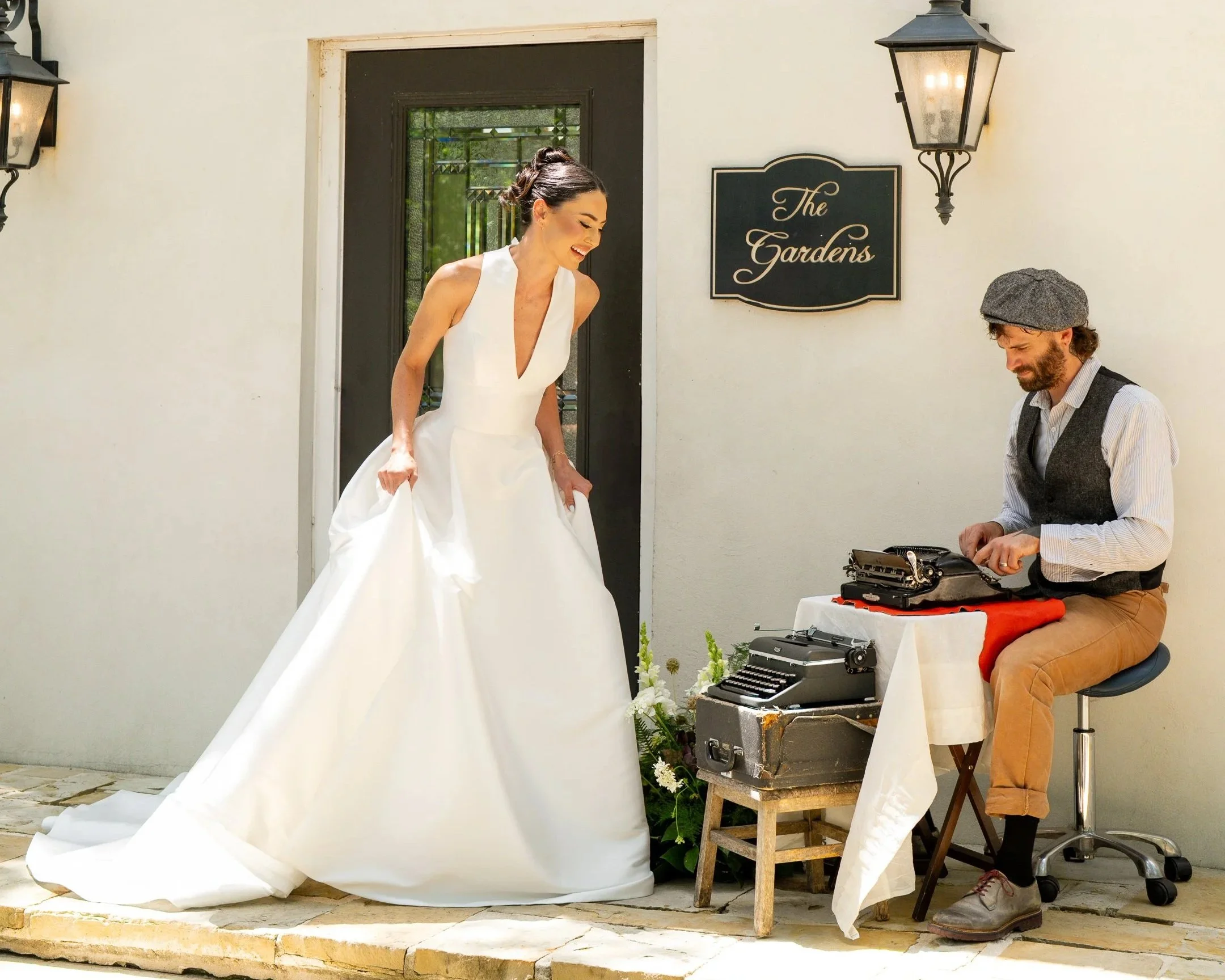 “Noaa and his team was so amazing to work with! They were on time, communicative, and having them gave our guests a really unique offering at our Valentine's Day themed wedding! It was so special and fun, and so many of our guests said they loved how special their poems were. I would highly recommend booking Noaa and Austin Typewriter Poets Collective!”